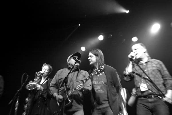Sue McLean's favorite saying was that "Music is good for your soul," and they didn't need to project it onto the screen at First Avenue Saturday to proof that was true. After a few quieter, more pensive sets by Sue's nephew, Jake, and the Jayhawks' Tim O'Reagan and Marc Perlman, the night reached its first climax when Paul Metsa brought out an unbelievable cast of characters to power through an emotional and hair-raising rendition of Dylan's "I Shall Be Released" that got more than a few concertgoers misty. Patty, Ricky, and Jason Peterson were on hand, as were Bobby Vandell, Willie Walker, Bobby Z, Wain McFarlane, and more—and that was just for the one song. They filed off as soon as they were done, only to be replaced by Mick Sterling and his horn section moments later for another soulful cover of "Into the Mystic"; as I wiped away a few of my own tears, I remember thinking that if they kept up at that pace, there would be well over 100 musicians moving across the stage by the night's end.