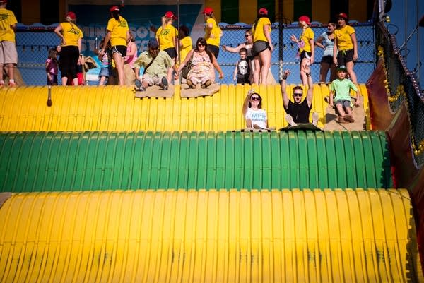 We managed to cram three quick questions into the 60 seconds it takes to reach the top of the slide, and still had time to enjoy the free-fall before handing back our burlap mats. Wheeeee!