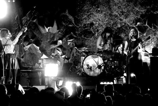 “Sleater-Kinney is up next” is still a slightly surreal sentence to absorb in 2015. After an introduction by The Current's Jade, Corin Tucker, Janet Weiss, and Carrie Brownstein took to the stage with little fanfare and quickly picked up their instruments. The music was so loud that dormant confetti from a long-ago concert continuously fell from the ceiling, the building itself seeming to celebrate Sleater-Kinney's return.