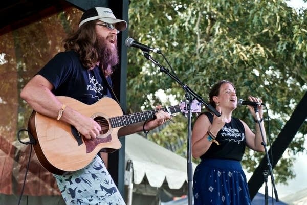 Wailing Loons, also Minneapolis-based, were given the both the opportunity to help prepare the meals and the chance to soundtrack each of these communal dinners with their brand of backwoods-inspired bluegrass. Four members (Dan Wilder on guitar/vocals, Emilie Hitch on vocals/percussion, Casey Pavek on banjo, and Nick Neylon on bass) performed 6:00 p.m. Thursday, Friday, and Saturday of the festival and brought their banjo and stand-up bass to the Solar Stage, located within the environment-focused Planet Roo section of the festival grounds.